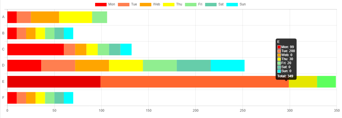 Mon ~ Sun κΉμ§ A μ κ°λ€μ μΆλ ₯νμλ€.